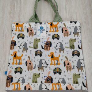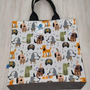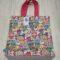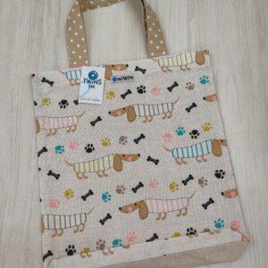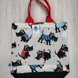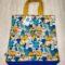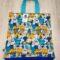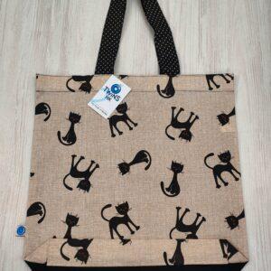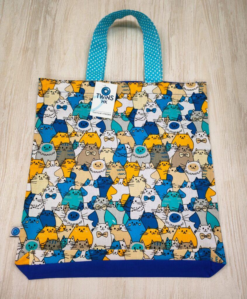 Malá textilní nákupní taška zn 100% bavlny s motivem koček ,zadní strana je tmavě modrá ,rozměr je 35x32cm.